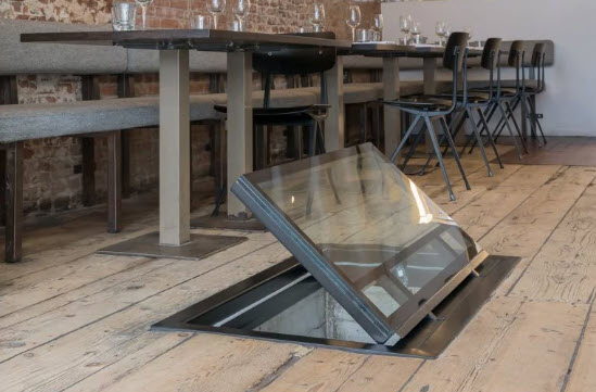 In addition, these floor hatches provide a very nice contrast to, for example, a robust floor or brick basement. A nice example is this glass floor hatch in Amsterdam. This glass hatch provides access to the wine cellar. Prefer a more subtle look? Then our concealed floor hatches might be a better option for you.