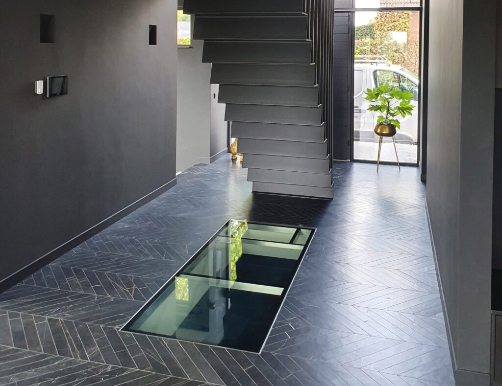 Wij hebben met onze glazen vloerluiken een oplossing ontwikkeld om open kelders op een mooie en veilige manier toegankelijk te maken. Het vloerluik is beloopbaar en geheel verzonken in de vloer, zonder uitstekende delen. Het openen en sluiten kan om voor de veiligheid alleen via een wandschakelaar. Wanneer de stroom in uw woning uitvalt, kan het luik uiteraard ook geopend worden.