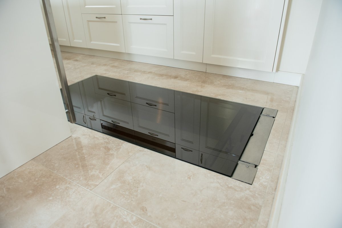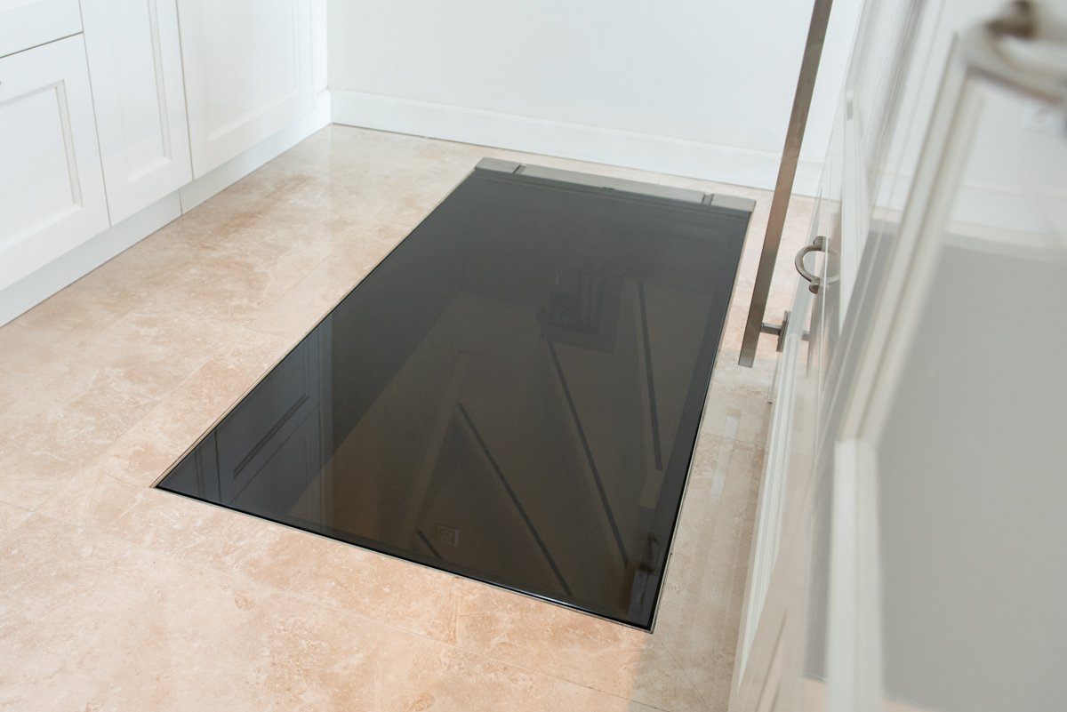 Dit glazen vloerluik voor een wijnkelder zorgt voor een ruimtelijk effect in uw woning. De kelder wordt hier op een stijlvolle en praktische manier verbonden met de keuken. Daarbij hebben wij samen met onze opdrachtgever gekozen voor hoogwaardige kwaliteit, in combinatie met een geweldige uitstraling.