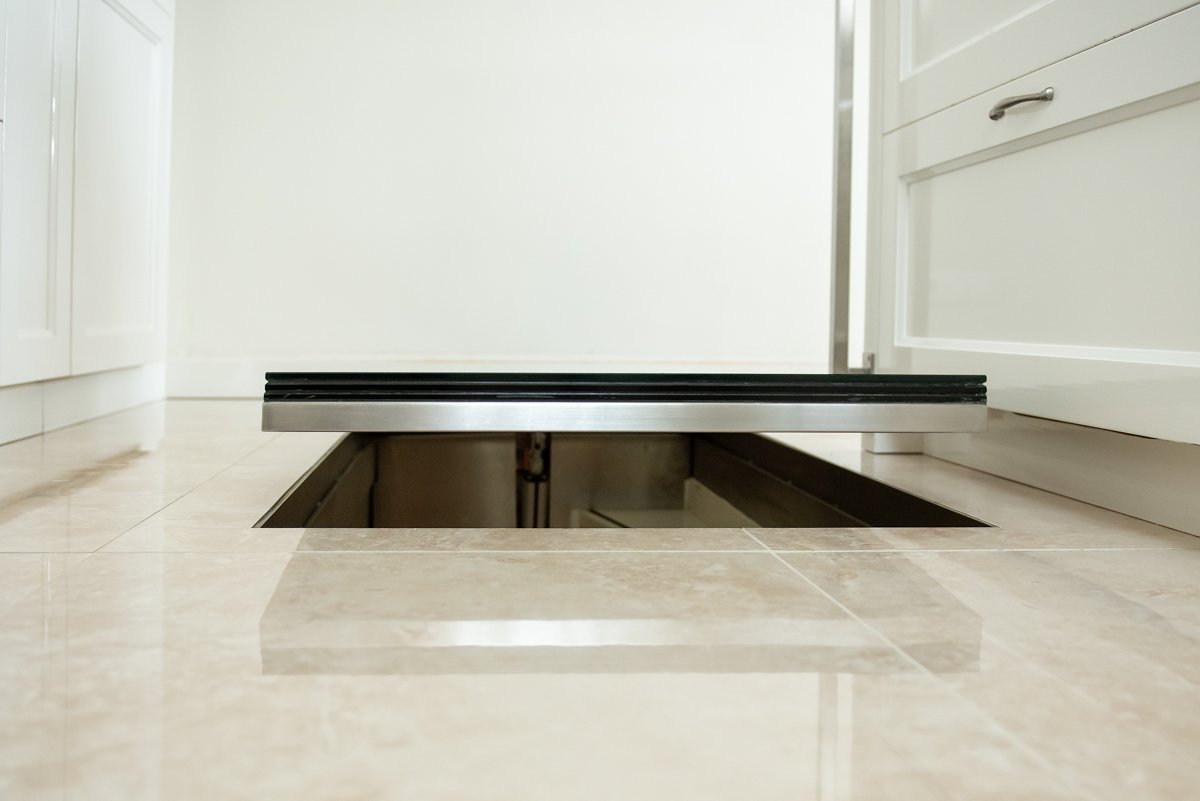 Wij hebben met onze glazen vloerluiken een oplossing ontwikkeld om open kelders op een mooie en veilige manier toegankelijk te maken. Het vloerluik is beloopbaar en geheel verzonken in de vloer, zonder uitstekende delen. Het openen en sluiten kan om voor de veiligheid alleen via een wandschakelaar. Wanneer de stroom in uw woning uitvalt, kan het luik uiteraard ook geopend worden.