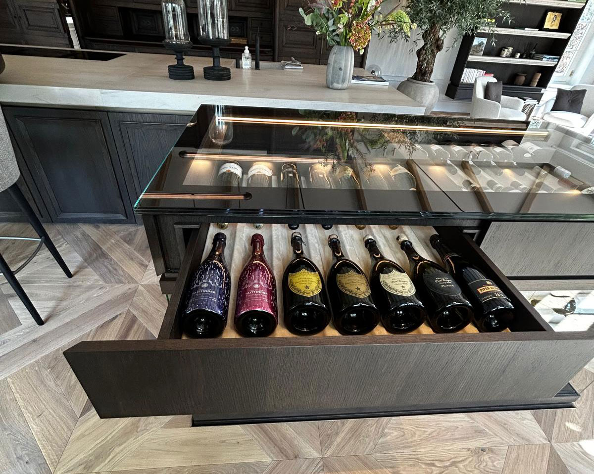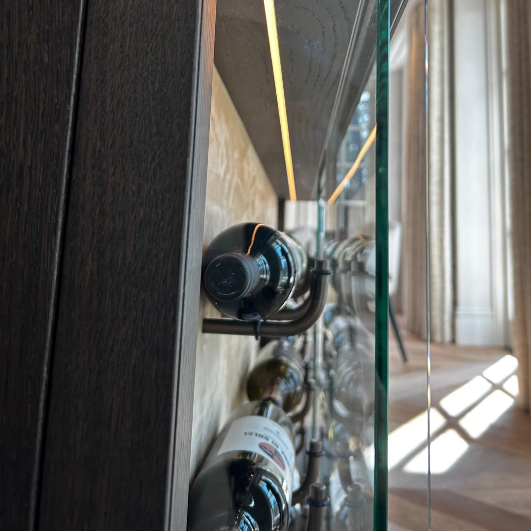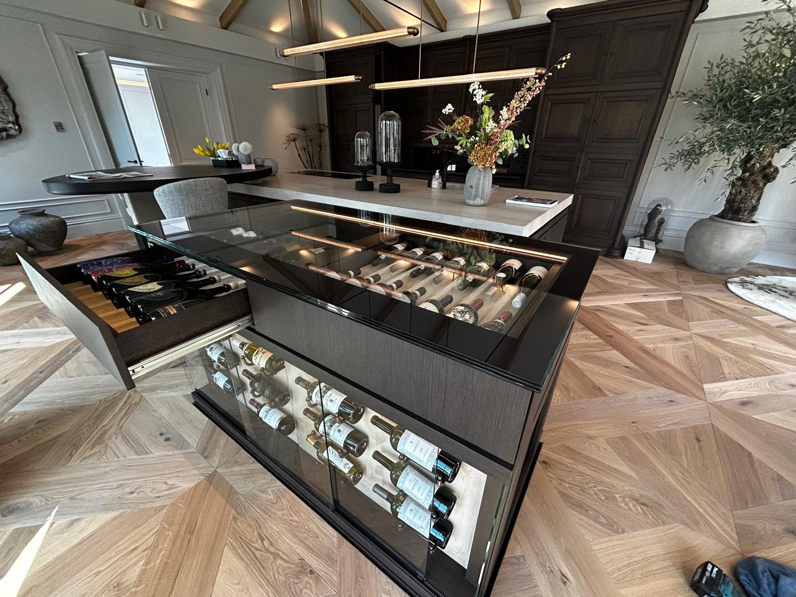 Het resultaat is een verfijnde oplossing waarin techniek, design en beleving samenkomen: een functionele wijnopslag die tegelijkertijd een architectonisch statement vormt.